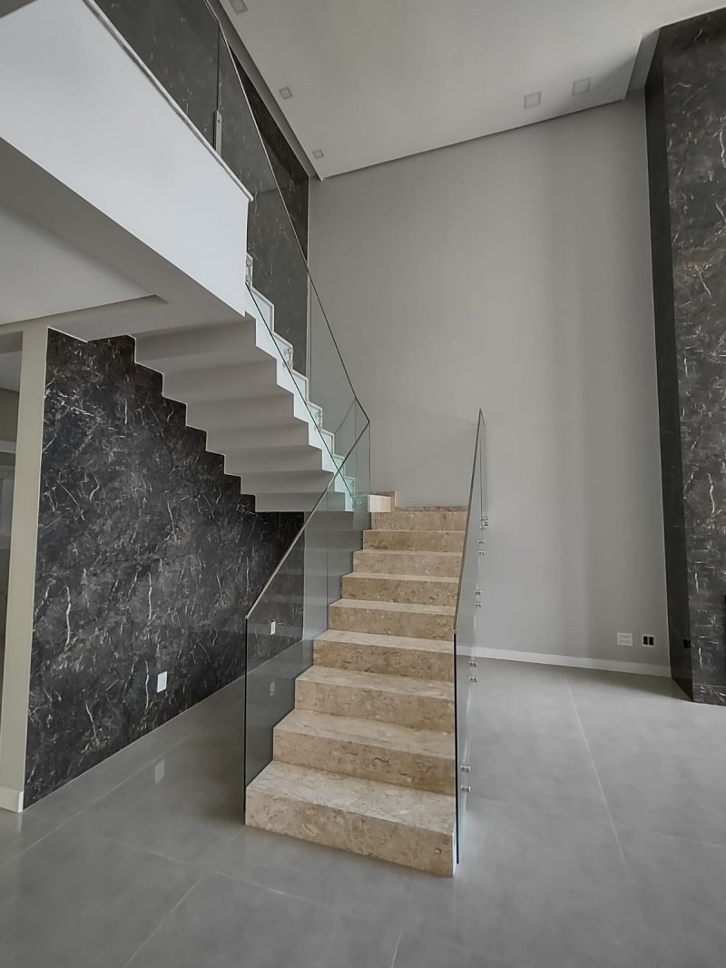 Diferenciais: Persianas motorizadas nos dormitórios, esperas para ar condicionado split, espera para água quente, espera para painel fotovoltaico, escada em mármore travertino, sanca e rebaixo em gesso, alto padrão de acabamento.