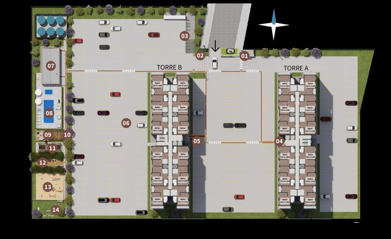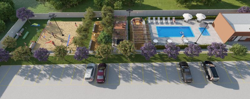Condomínio fechado que conta com elevadores, portaria, bicicletários, salão de festas, piscinas, fogo de chão, quiosque com churrasqueira, chimarródromo, pomar de bergamota, playground e espaço pet.