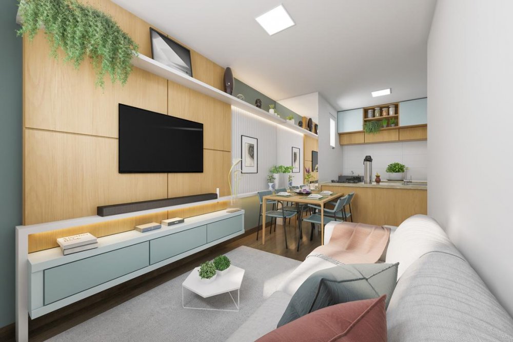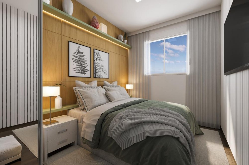 Excelentes apartamentos com opção de planta de 47,94m² sem sacada ou 49,69m² com sacada, ambos com dois dormitórios e ambos com possibilidade de vaga coberta ou descoberta. Os apartamentos são entregues prontos para morar, com piso laminado nos dormitórios e sala e piso cerâmico na cozinha e banheiro, além de outros diferenciais como louças e metais sanitários instalados, azulejos na cozinha e banheiro, luminárias paflon em todos os ambientes e janelas dos dormitórios com persianas.