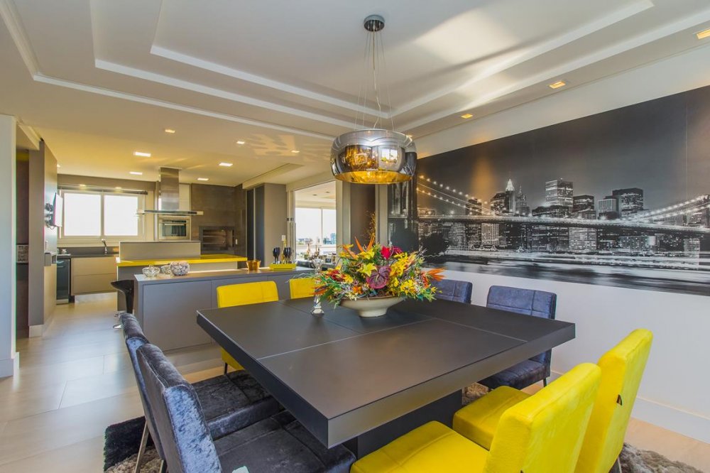Apartamento pronto pra morar, semi mobiliado, sexto andar com linda vista. São 153,69m² privativos, com duas suítes, lavabo, sala de estar com ampla varanda, sala de jantar, cozinha com churrasqueira e três vagas de garagem cobertas com opção de compra de vaga extra.