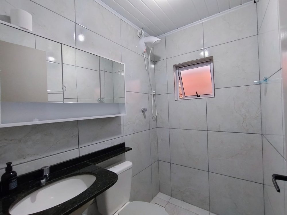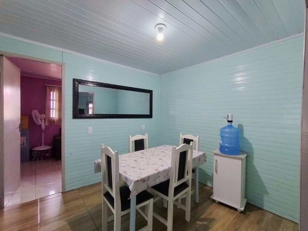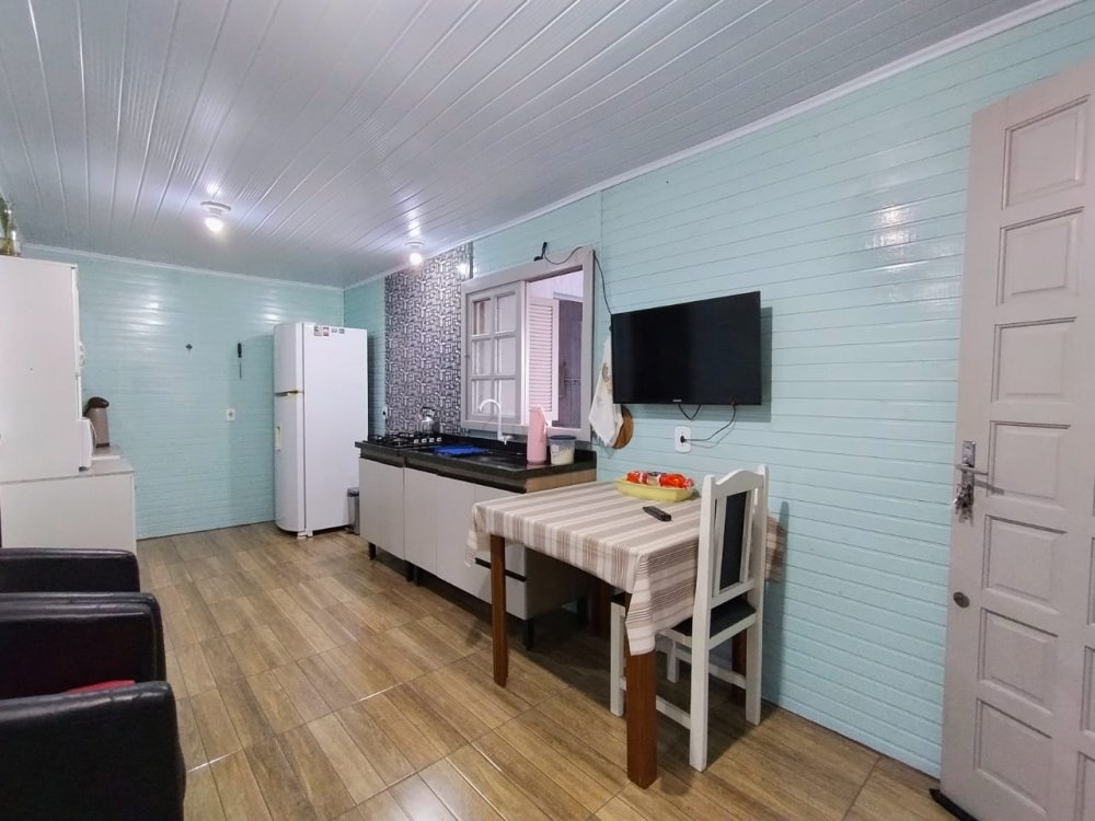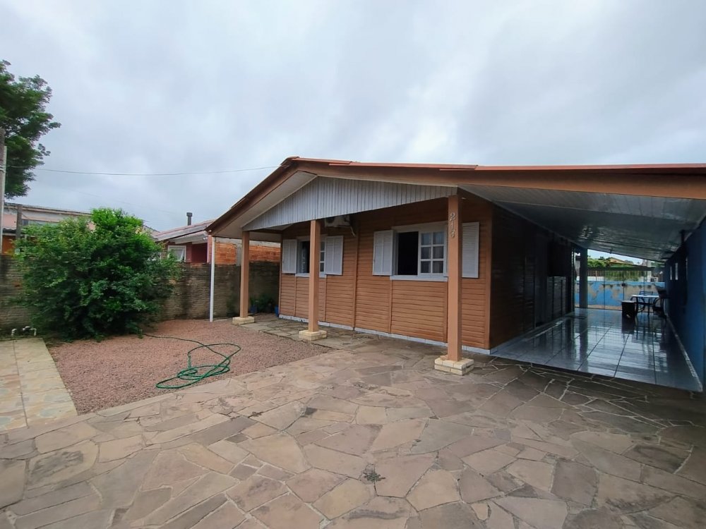Excelente casa em madeira com aproximadamente 100m² construídos, contendo dois dormitórios, sala, cozinha bem ampla, banheiro social, área fechada com churrasqueira e banheiro extra, lavanderia, pátio na frente e nos fundos, garagem coberta para dois carros e descoberta para mais dois. Fica semi mobiliada.