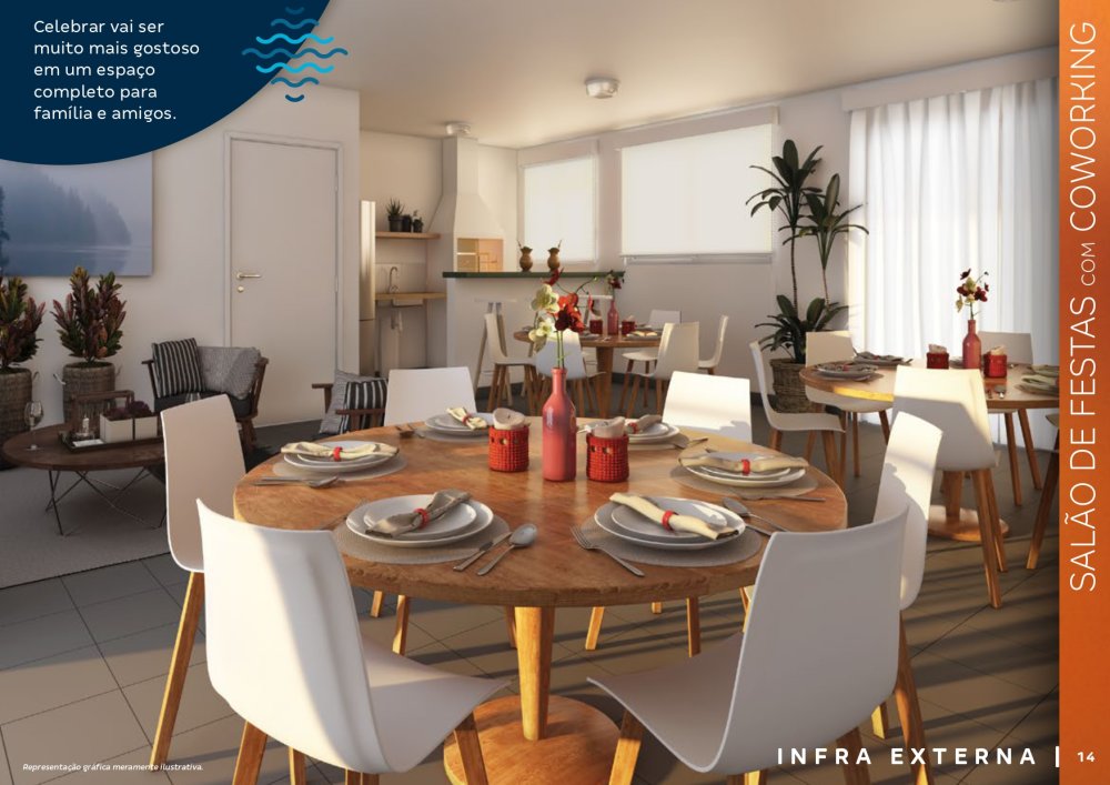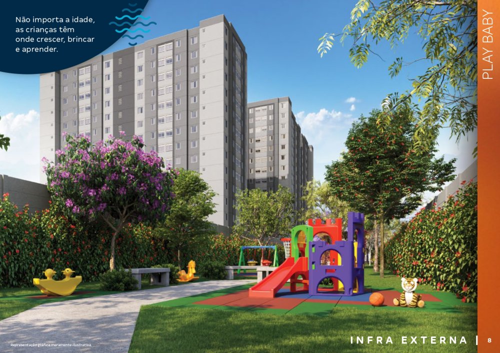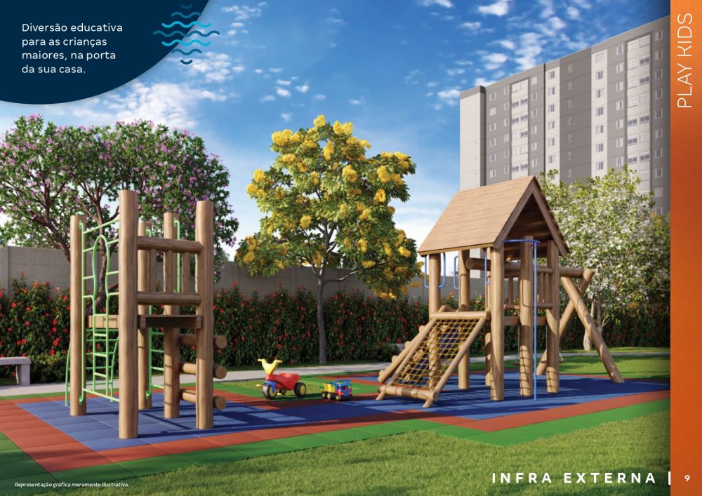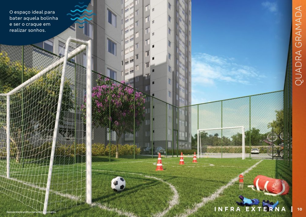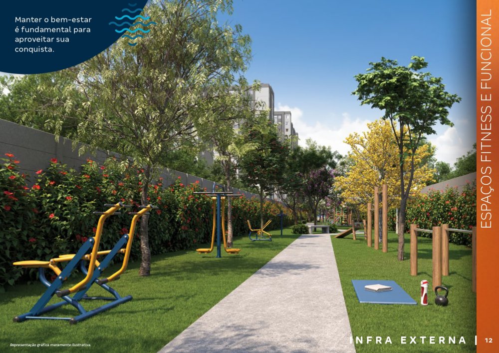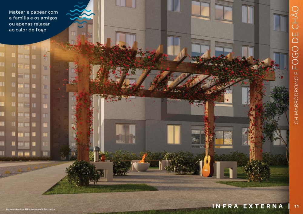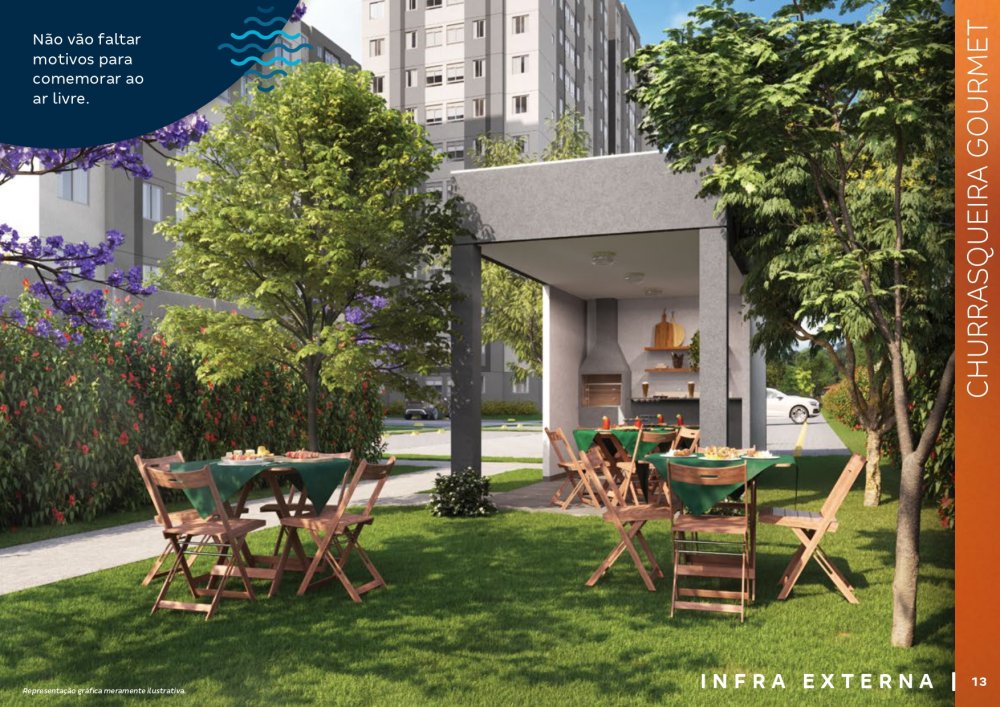 O condomínio conta com bicicletários, quiosques com churrasqueira, 3 elevadores por torre, salão de festas com espaço de coworking, chimarródromo e fogo de chão, playground pet, playground kids, playground baby, quadra de esportes gramada, churrasqueira gourmet, praça de jogos, espaço fitness extwerno, portaria 24 horas.