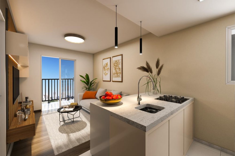 Diferenciais: os apartamentos serão entregues com piso laminado e cerâmico, louças e metais sanitários, luminárias paflon em todos os ambientes e persianas nas janelas dos quartos.