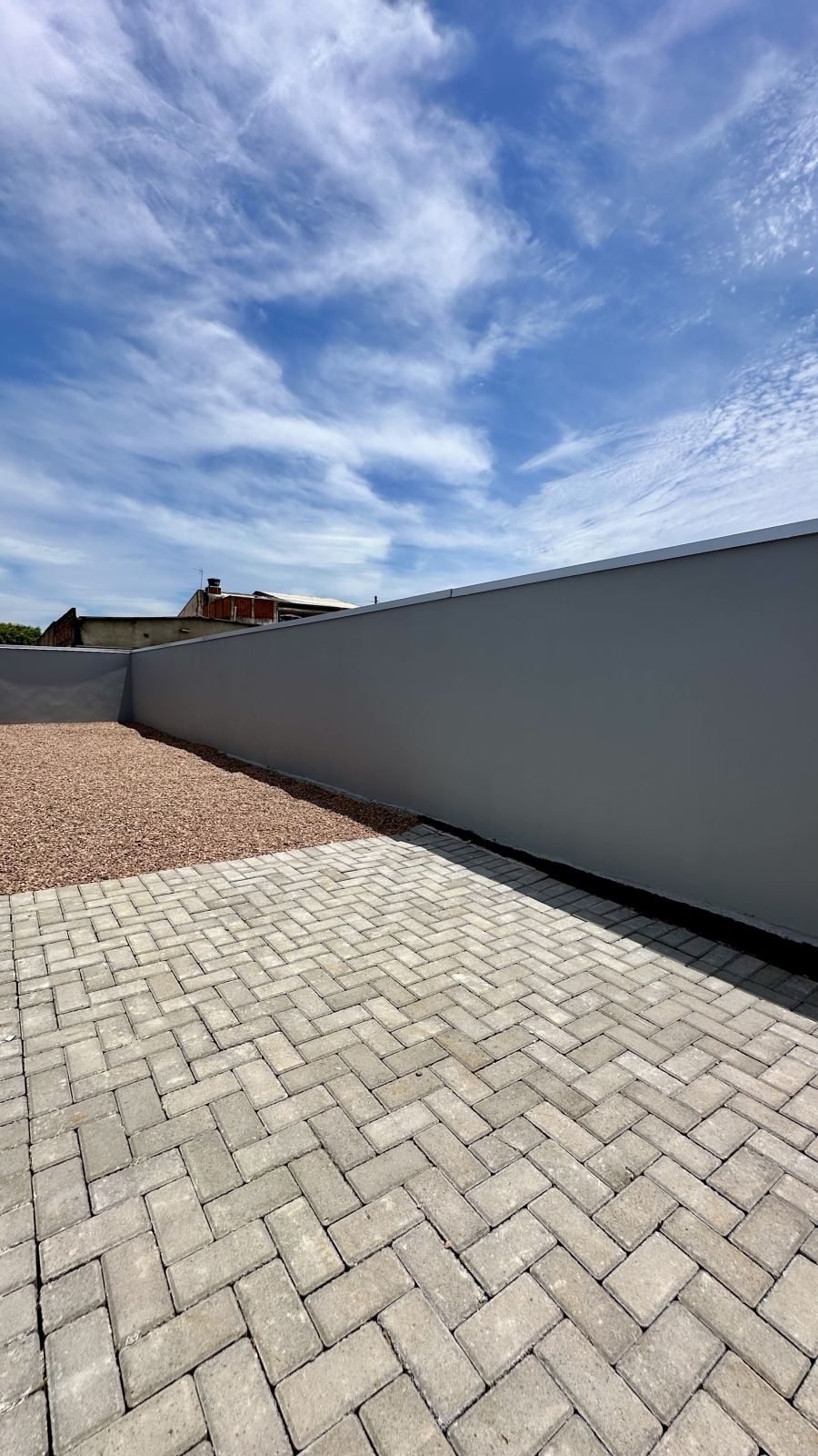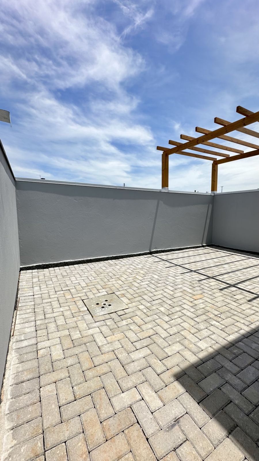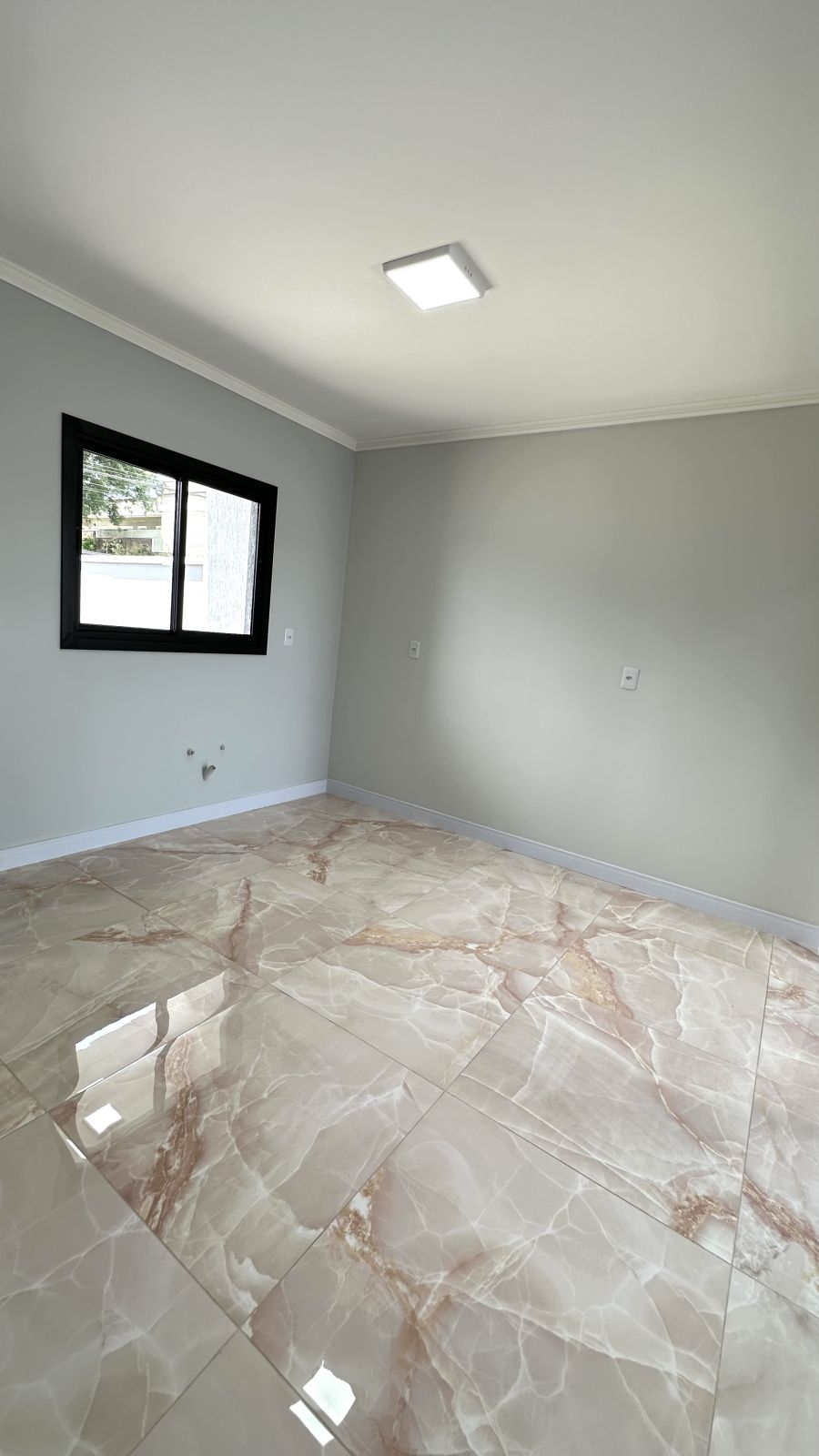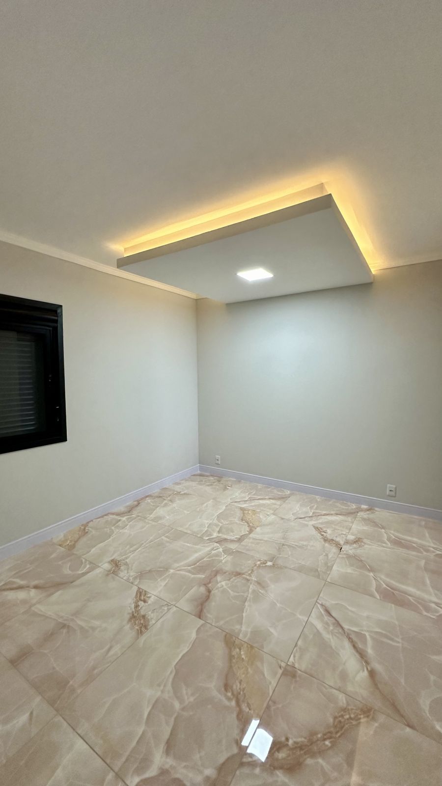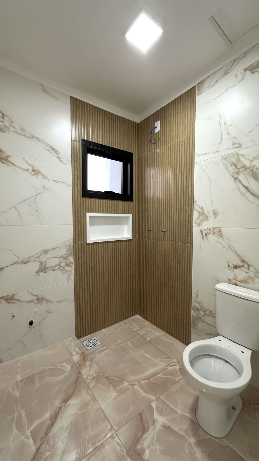 Diferenciais: portão contra-peso amplo, rodapés de PVC, gesso decorado, iluminação completa, aberturas em alumínio e vidro temperado, laje, piso porcelanato, água quente em todas as torneiras, pé direito duplo na sala com vidro espelhado.