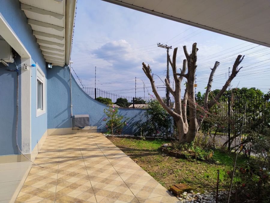 Terreno com 300m² e 154m² construídos, com dois quartos, closet, banheiro social, sala, ampla cozinha, área de serviço, pátio em frente com jardim, garagem coberta para 2 carros, área com churrasqueira, pátio nos fundos. Fica semi mobiliada.