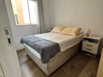 O imóvel fica no quarto andar, bem iluminado, com dois dormitórios, sala de estar/jantar, cozinha com área de serviço, banheiro, uma vaga de uso rotativo, e o melhor: fica totalmente mobiliado, saindo somente geladeira, cama com criados mudos, arara de roupas e itens pessoais, é só entrar e morar!