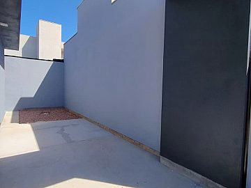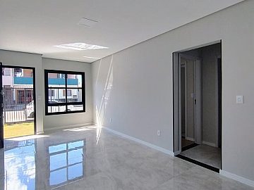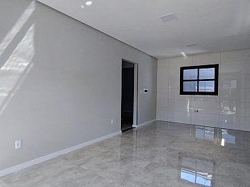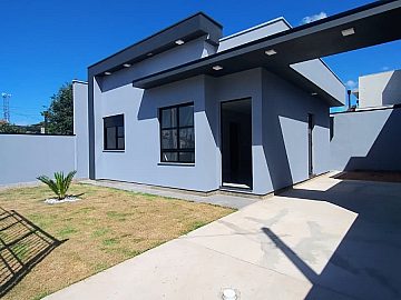 Com 55,41m² construídos, ela conta com 2 dormitórios sendo um suíte, banheiro social, sala e cozinha em ambiente aberto, área de serviço e vaga para dois carros, além de pátio na frente e lateral.
