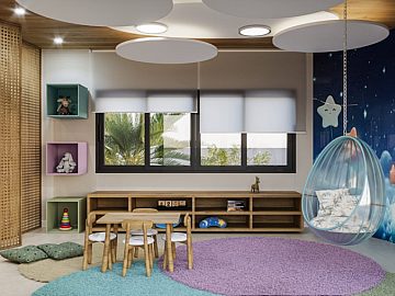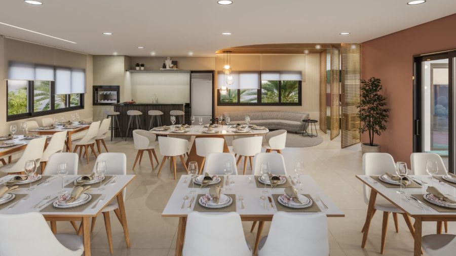 O condomínio conta com portaria virtual 24hs, armário inteligente, fire place, playground, salão de festas, espaço kids, piscina adulto e infantil com deck, placas de energia para áreas comuns, reaproveitamento de água da chuva e elevador.